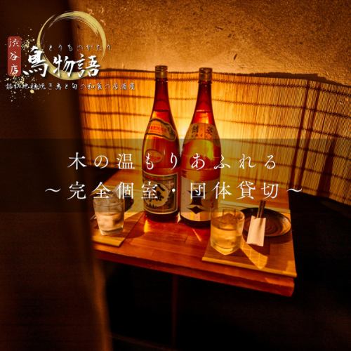 【渋谷の人気個室居酒屋◎】厳選鶏を炭火で香ばしく焼き上げた焼き鳥、旬の天ぷらやグリル料理が食べ放題で楽しめる贅沢プランをご用意♪木の温もりあふれる落ち着いた空間で、癒しのひとときを。2名様~団体様まで完全個室をご案内◎ご予算や人数に応じた最適なコース提案もお気軽にどうぞ。