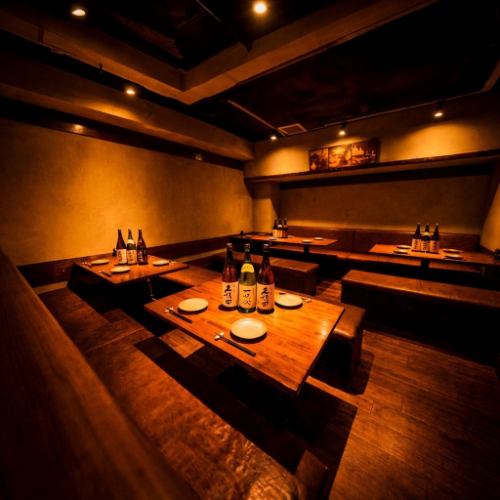 【2名様~最大20名様まで対応◎】完全個室空間で合コンや各種飲み会に大好評♪ゆったり寛げる落ち着いた雰囲気は、会話を楽しみたい方にも最適。間接照明が灯る空間で、香ばしく焼き上げた焼き鳥や逸品料理をお楽しみください。人気のお席のため、ご予約はお早めに♪